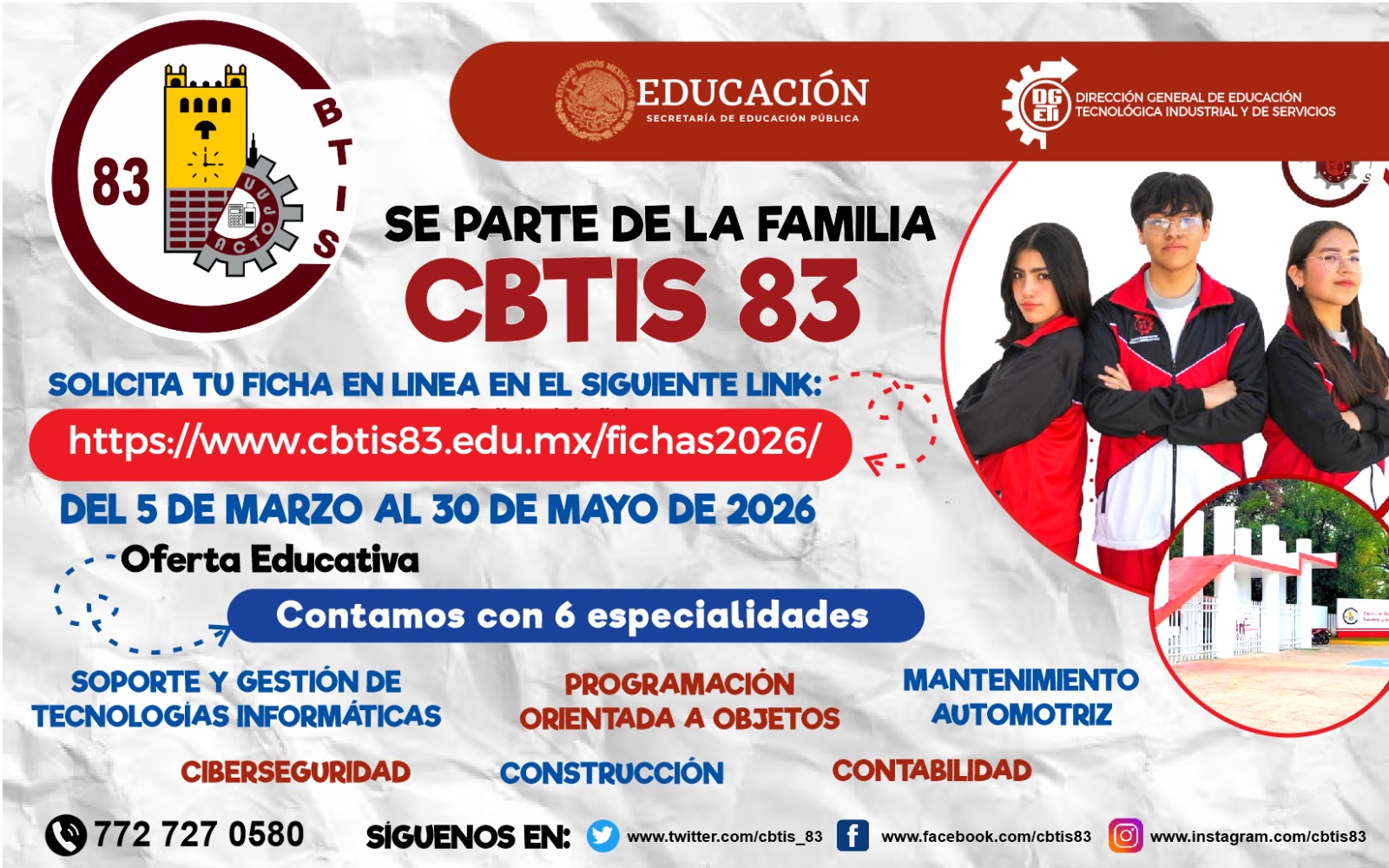 ¡No dejes pasar esta oportunidad y únete a la gran familia CBTis 83!